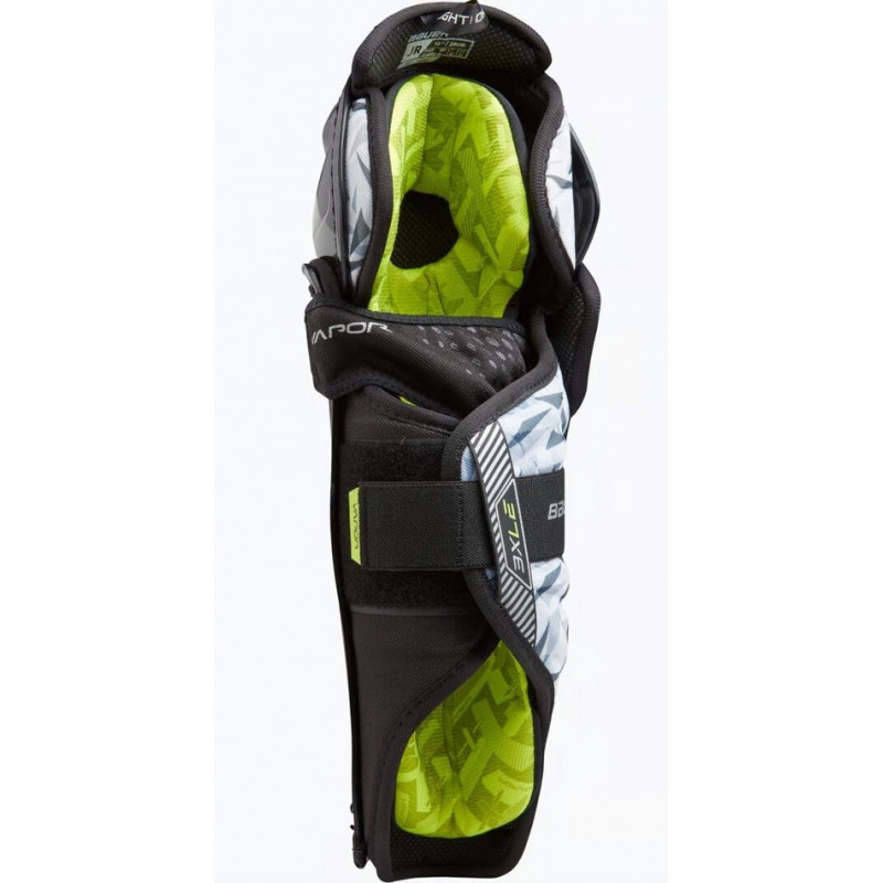 The anatomically molded X-LITE cap protects the shin and contours the young player’s legs, providing a more precise fit. This piece of gear also provides a better protection against impacts and improved comfort. The ErgoDynamic Lab technology offers superior knee protection and reduces the risk of injury by absorbing shocks. The knee is a vulnerable area for ice hockey players, and needs proper protection. Players also benefit from a deeper fit and a greater sensation of comfort. This part of the shin guard doesn’t affect the player’s mobility because it perfectly adapts to the natural movements of the knee. A polyethylene (PE) insert is used to provide enhanced protection of the calf. The optimal resistance against impacts and blows is made possible by the material's rigidity while still remaining lightweight. Therefore, protection does not hinder player performance.