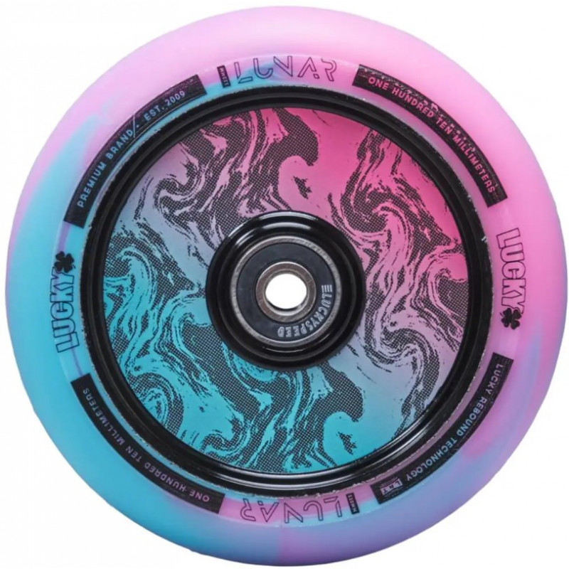 LUCKY Lunar freestyle scooter wheel in 110mm and 86A, with 6061 T6 anodized aluminum core and Lucky Rebound™ Urethane technology.