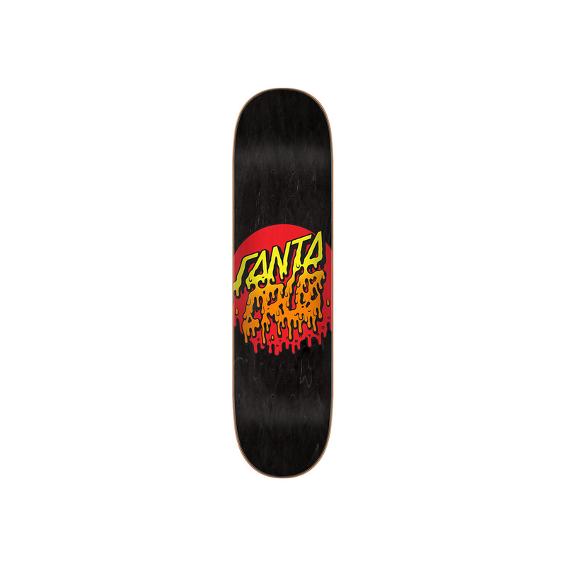 Santa Cruz Rad Dot Hard Rock Maple skateboard deck in 8", with the famous and timeless Santa Cruz dripping logo on black background.