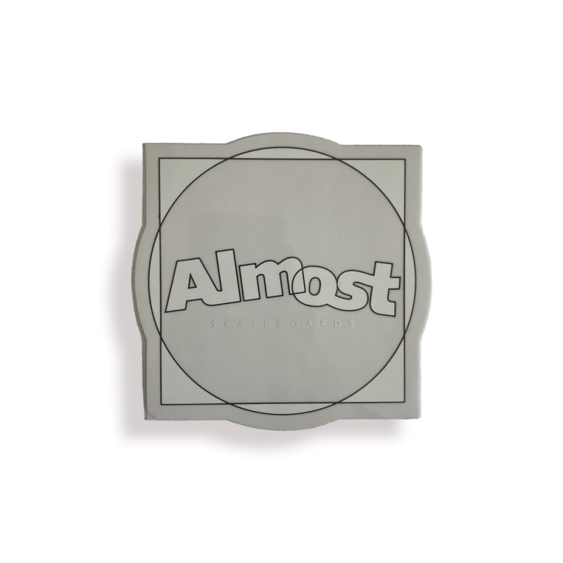 ALMOST white and transparent sticker. Size: 9x9cm.