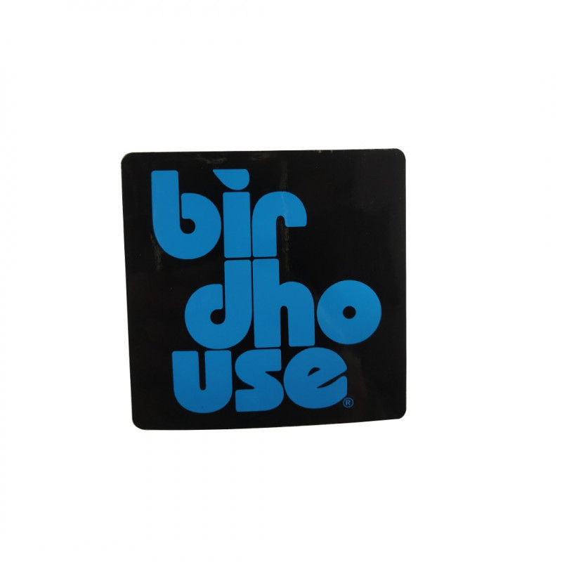 BIRDHOUSE Skateboard sticker with the brand logo in blue on black background.