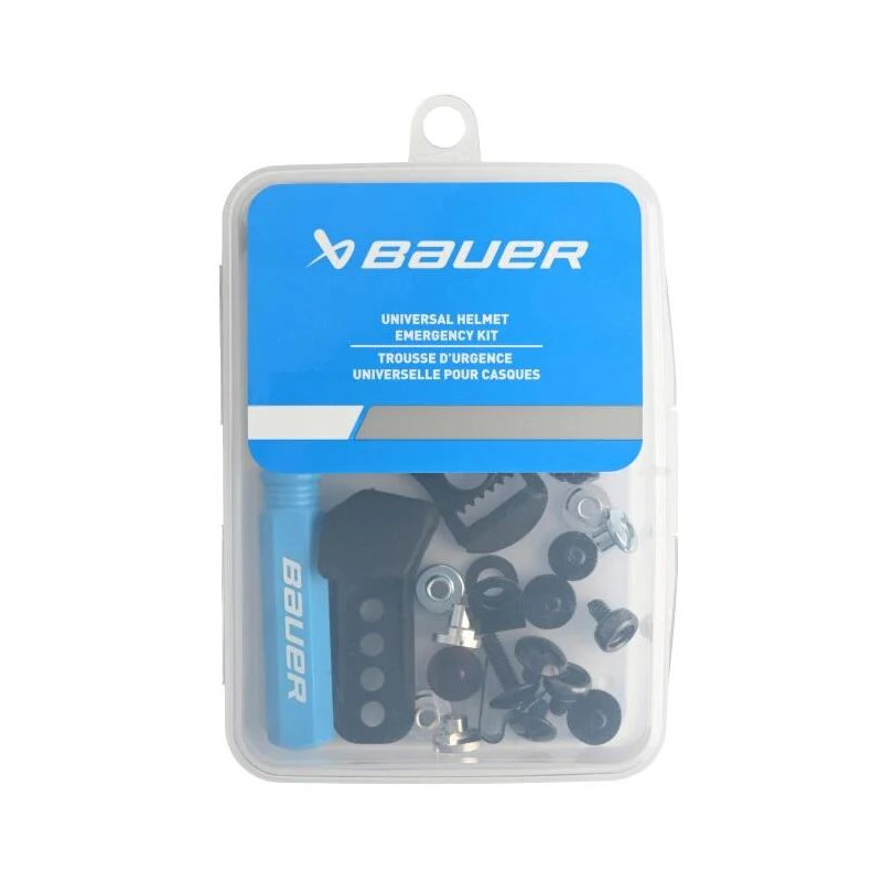 The Bauer Repair Helmet Kit contains all the hardware needed to completely change the screws on your hockey helmet. Whether your helmet is mounted with a visor or a grille, the Bauer repair kit includes all the useful hardware, only the visor spacers are not included in the Bauer kit. The screws in the repair kit are suitable for all sizes of hockey helmets.