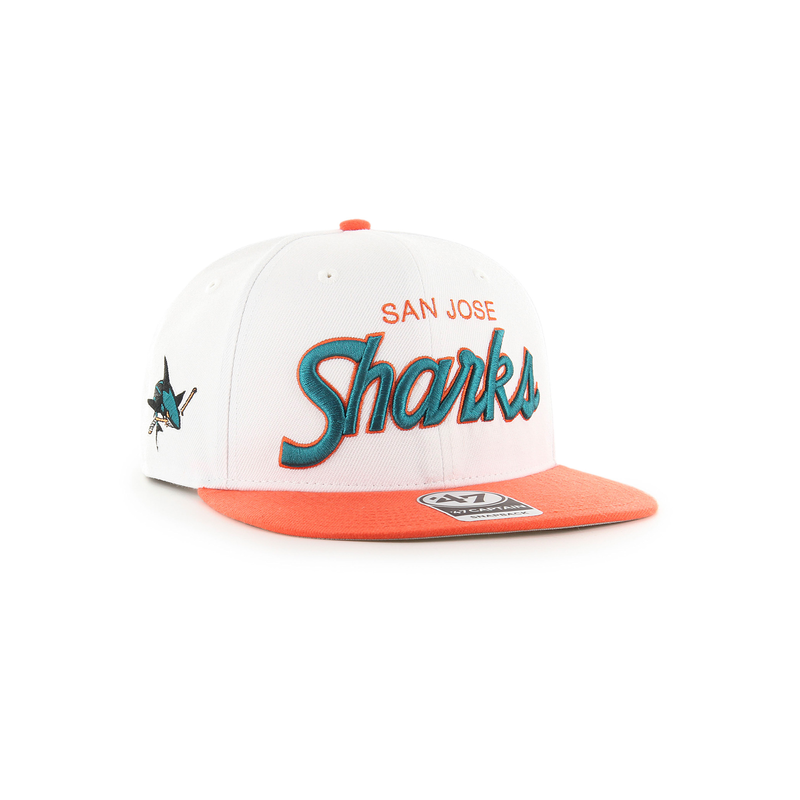 Casquette NHL San Jose Sharks Script Side Twotone Captain blanc 47 CAP. Système de fermeture snapback.