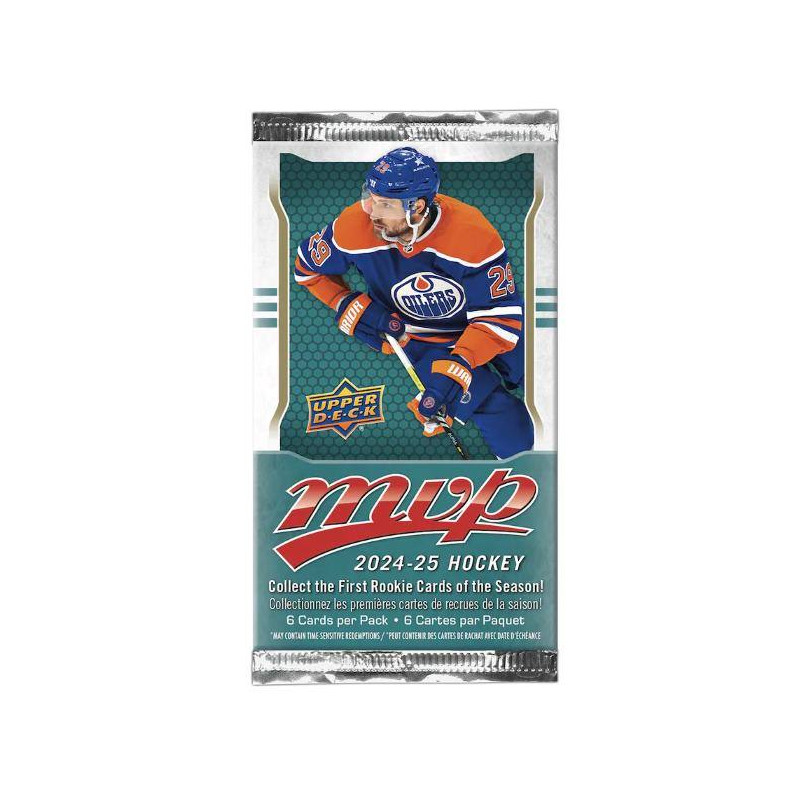 1 Paquet comprenant 6 cartes NHL Upper Deck MVP année 2024-2025