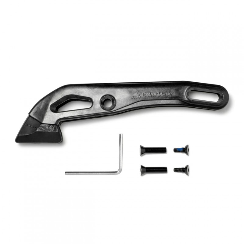 Le Rollerblade Shadow Brake a un design léger avec une puissance d'arrêt importante. Le frein est fabriqué en nylon et en fibre de carbone avec des panneaux latéraux renforcés et une fente allongée réglable pour s'adapter à différentes positions de la roue centrale de la platine. Se monte sur les platines Rollerblade Rival Speed et 3x110 des Twister. Tout le matériel est inclus.