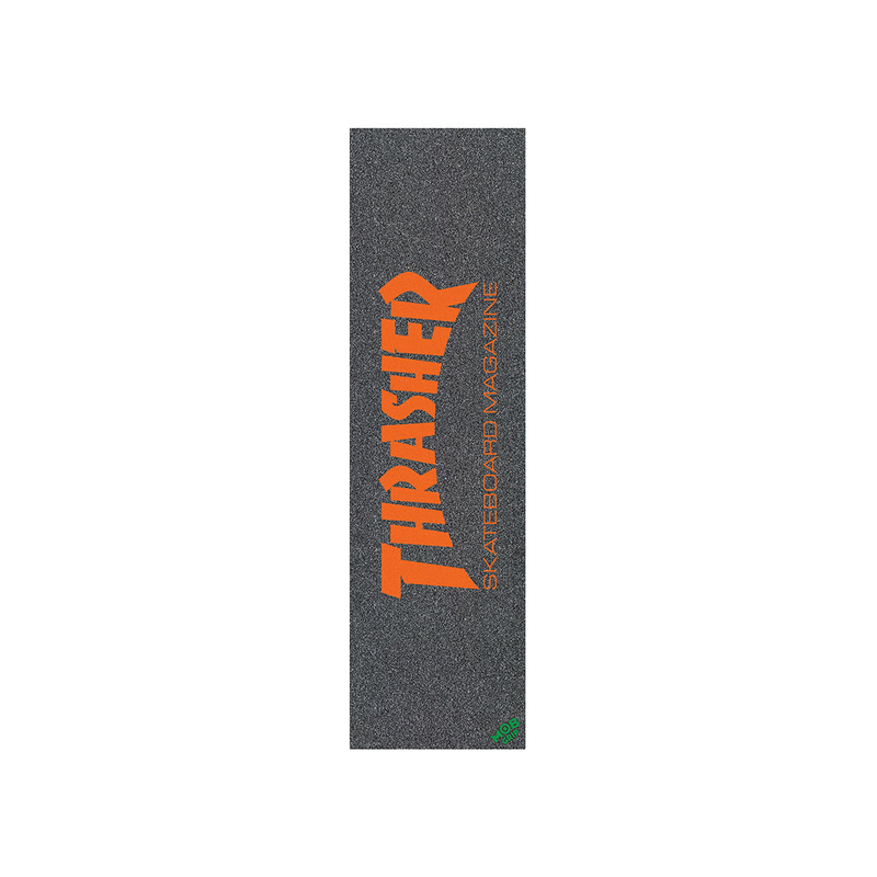 Grip de skateboard THRASHER Skateboard Magazine x MOB Orange Logo, toujours avec l'accroche de qualité des grips MOB.