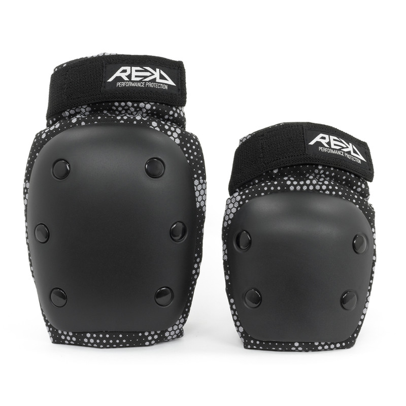 Le jeu de protection Junoir résistant REKD est idéal pour la jeune génération souhaitant se protéger dans la pratique des sports extrêmes. Les genouillères et les coudières offrent une excellente protection avec les coques rivetées.