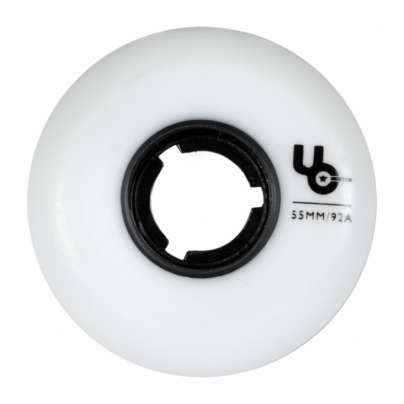 Roues de roller agressif UNDERCOVER Team blanche en 55mm et 92A, des roues rapides, résistantes et stable pour grinder et slider partout.