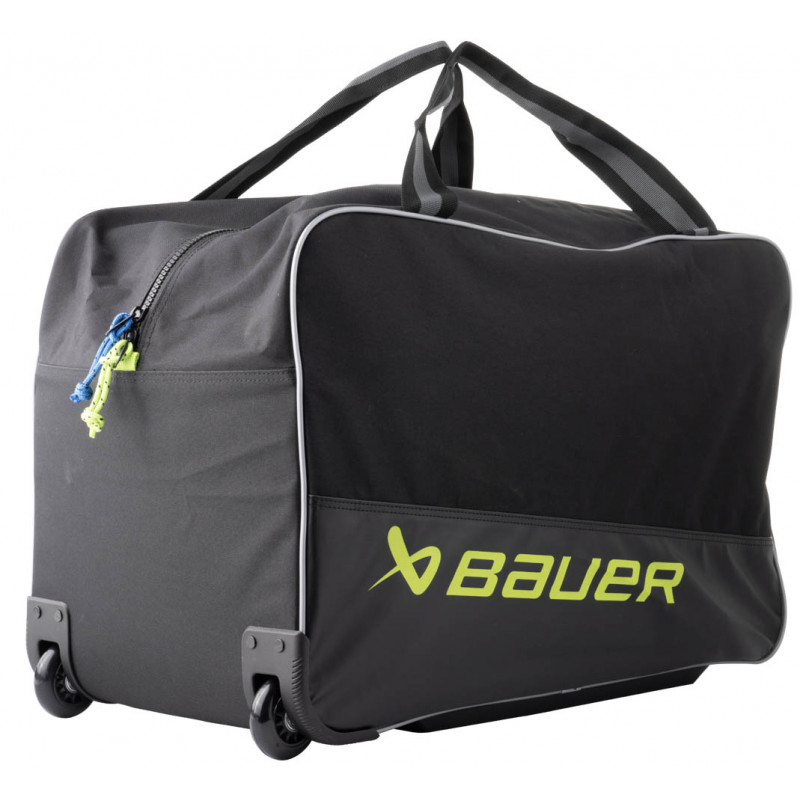 Ce sac d'équipement à roulettes Bauer Core est adapté aux enfants et leur permet de transporter leurs affaires de hockey plus facilement.