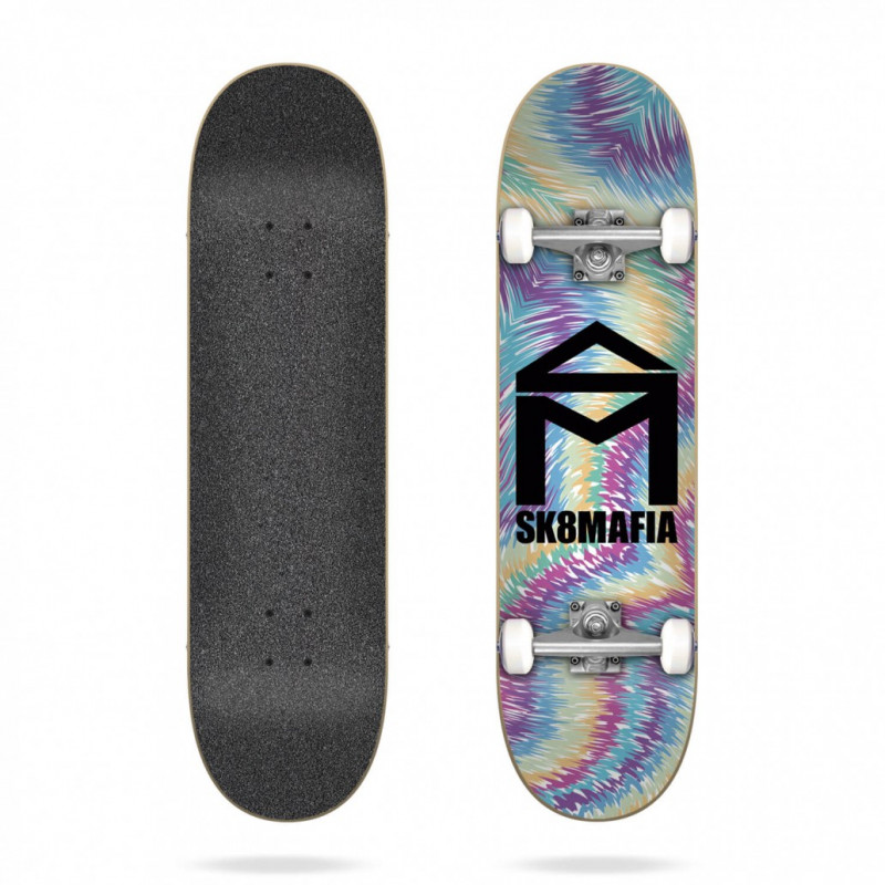 Skateboard complet SK8MAFIA House Logo Tie Dye 7.87", idéal pour qui veut débuter, progresser et apprendre des tricks avec un skate de haute qualité
