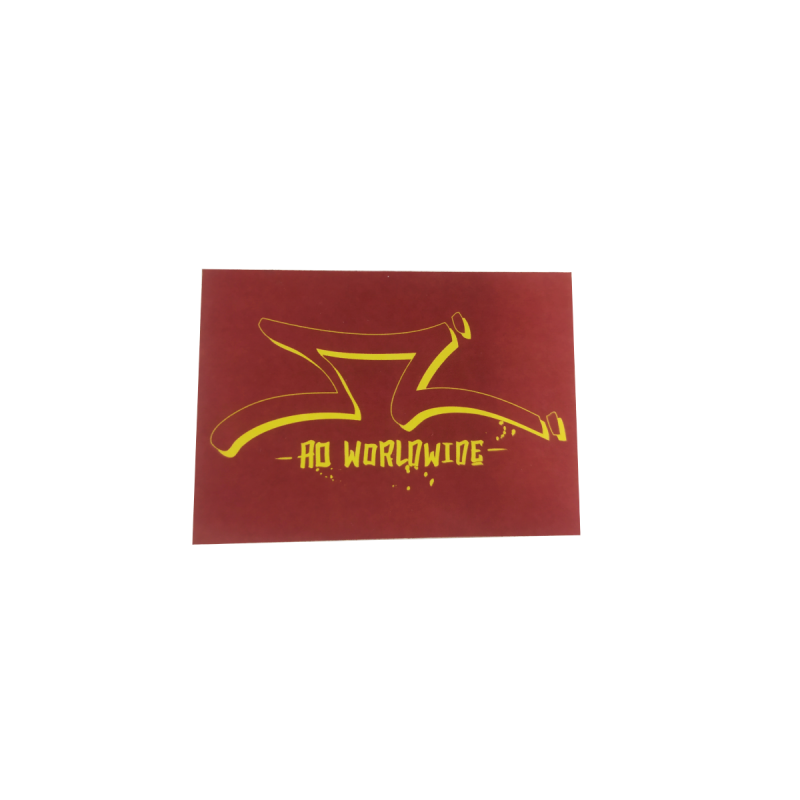 Sticker rouge de la marque de trottinette freestyle AO Scooter. Dimension : 5.1cm x 7.3cm
