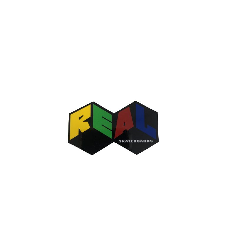 Sticker multicolor de la marque de skateboard REAL. Taille : 7.5cm X 4.5cm