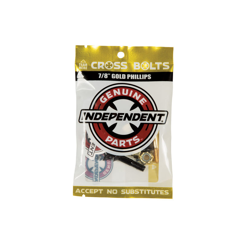 Set de visserie pour skateboard INDEPENDENT GP Phillips Noir/Or cruciforme, plusieurs tailles disponibles.
