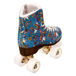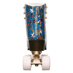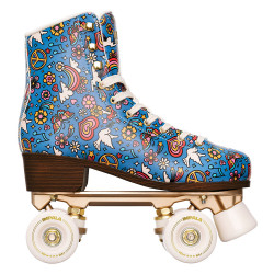 New IMPALA Harmony Blue rollerskate dressed in a new print "Harmony" is equipped with trucks and gold embroidery.