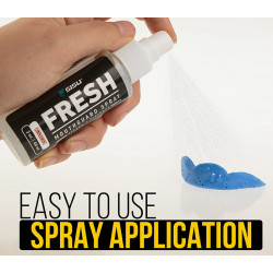 This rejuvenating cinnamon-mint spray is applied directly to the mouthguard before use, leaving a taste as sweet as victory itself. To clean up after use, rinse, spray and store the mouthguard once it's dry.
