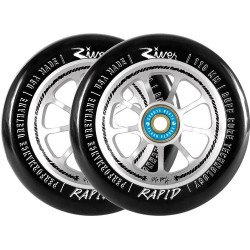 River Wheel Co is a brand that specializes in high quality freestyle scooter wheels. These are 100% made in California and feature River Flash Flood bearings and 9-spoke aluminum cores to achieve the perfect balance of weight and strength. Their mission? To satisfy you with top of the line products.