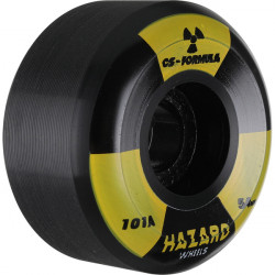 HAZARD Wheels Radio Active CS Conical Black skateboard wheels in 54mm and 101A, with yellow and black colors representing the ractio-active logo.