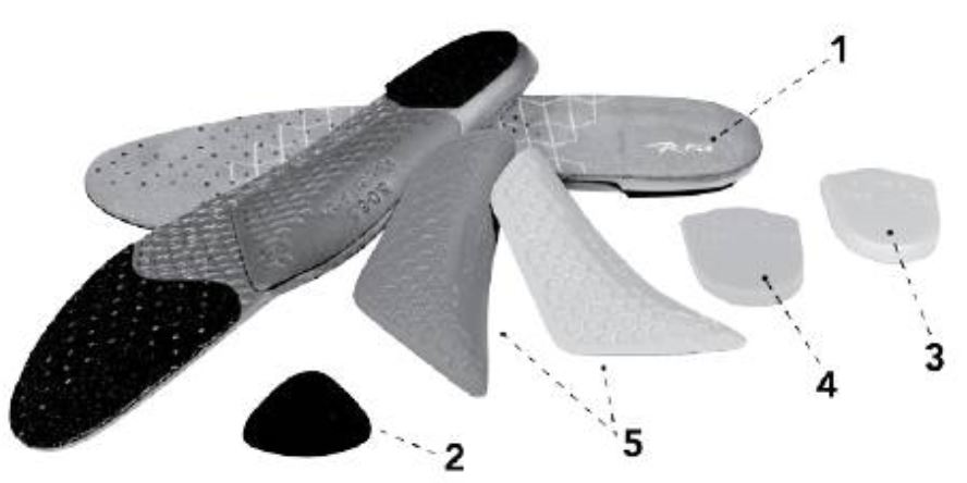 The R-Fit Footbed Kit includes the R-Fit Footbed, along with interchangeable arch supports, heel wedges, heel lifts, metatarsal pads, and an instruction guide. This R-Fit Kit is sized for ALL men’s high-top boots (Ice: Nearly all black skate boot models; Roller: Artistic/Rhythm boots such as the black Model 172 is an example).