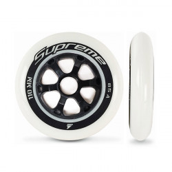 Rollerblade Supreme 110mm wheels are designed for high performance. The concave-spoke inner core design interfaced with a urethane outer enhances speed, mechanical grip and wear.