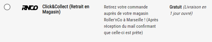 Suite à la situation que nous avons traversée, votre magasin Roller’n Co Marseille a décidé de continuer de mettre en avant le Click&Collect pour tous nos clients souhaitant retirer leur(s) article(s) en magasin et sans frais !