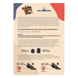 Le Truck Pro Park Chaya est fabriqué en aluminium forgé de la plus haute qualité, avec des axes en acier CroMo durables. Les suspensions de 72mm de large offrent des virages agiles et une grande maniabilité sur les bowls et les rampes, tandis que le design unique des suspensions décalées ajoute une protection supplémentaire pour les pivots, et augmente la durabilité tout en éliminant le mordant de la roue. Avec une largeur totale de 138mm, le Truck Pro Park Chaya aide à bloquer les tricks et permet des grinds techniques. Conçu et testé par Ragnaroll et le Chaya Pro Team.