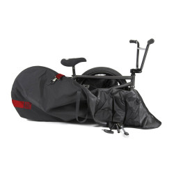 Le sac est conçu pour les bmx 20" avec guidons jusqu'a 9,5'' de haut. Les roues peuvent rester assemblées avec les pegs, il suffit juste de démonter la roue avant. Section d'usure du dessous renforcée, des poches internes sont présentes sur les côtés, très faciles à plier pour mettre dans votre sac a dos quand vous ne l'utilisez pas. Il peut être également fixé a l'extérieur de votre sac à dos avec des sangles qui sont incluses .. La bandoulière est rembourrée pour un meilleur confort lors du transport.